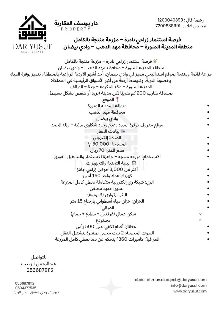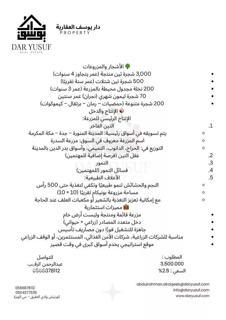 For sale: Fully productive farm – Al-Madinah, Al-Khafiq District
